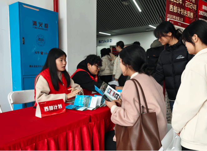 活动现场,工作人员通过发放宣传手册、展示主题展板、面对面答疑等方式,向同学们全面解读西部计划的招募条件、服务内容、政策保障及发展路径等核心信息,同时结合往届优秀志愿者的服务事迹,用生动鲜活的案例耐心解答,让大家对西部计划有了更直观、更深刻的认识。
