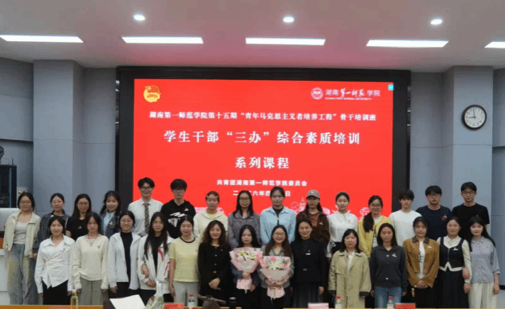 (通讯员:谭锦洪、孟琪、陈雨馨)4月10日晚,我校第十五期“青年马克思主义者培养工程”骨干培训班第八次培训课程在润寰南105报告厅顺利举行。校团委副书记(主持工作)易利作专题授课,校级优秀学生干部代表刘阳、陈姝言受邀作经验分享,全体青马学员参与本次培训。