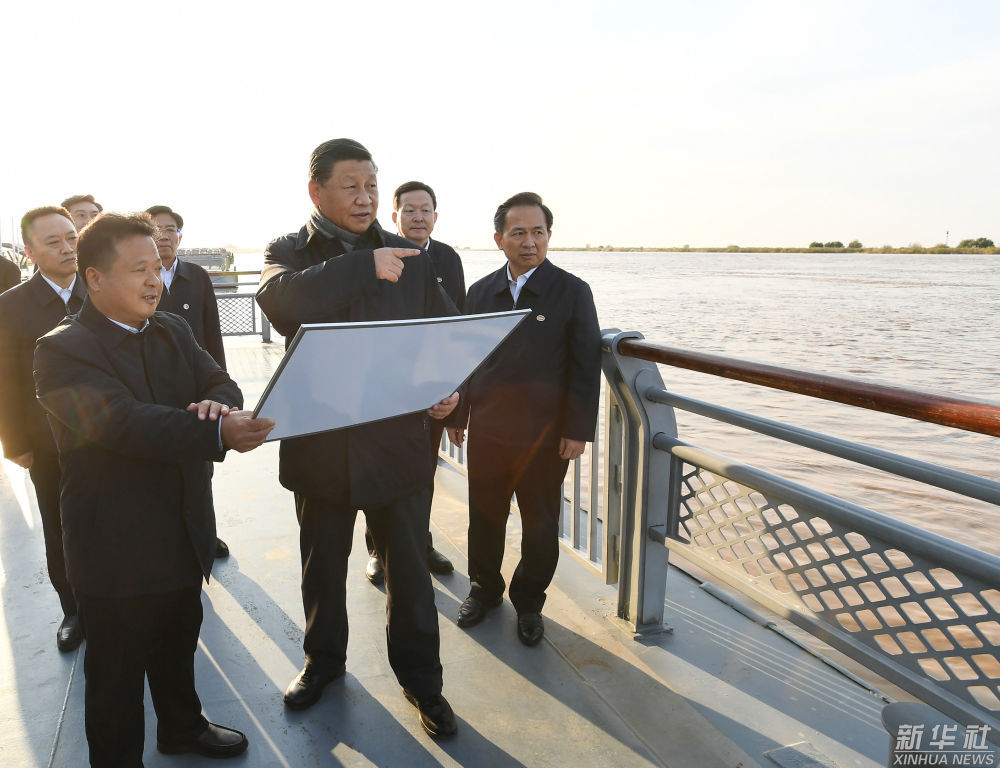 2021年10月22日下午,习近平在山东省济南市主持召开深入推动黄河流域生态保护和高质量发展座谈会并发表重要讲话。这是座谈会前,习近平20日下午在东营市黄河入海口考察。