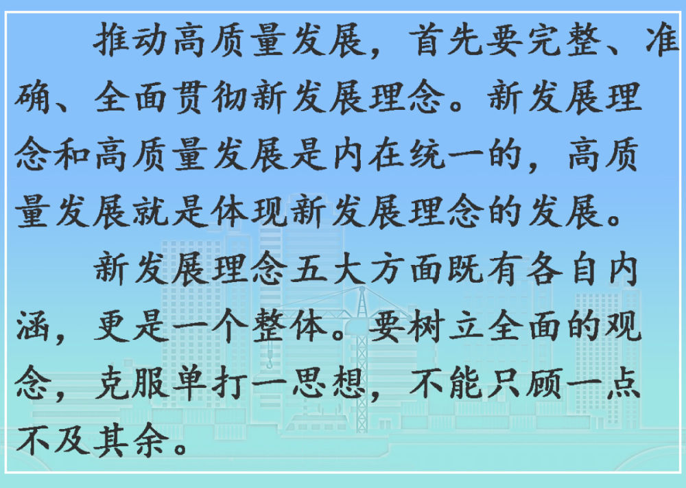 党的十九届六中全会审议通过的《中共中央关于党的百年奋斗重大成就和历史经验的决议》指出:“党中央强调,贯彻新发展理念是关系我国发展全局的一场深刻变革,不能简单以生产总值增长率论英雄,必须实现创新成为第一动力、协调成为内生特点、绿色成为普遍形态、开放成为必由之路、共享成为根本目的的高质量发展,推动经济发展质量变革、效率变革、动力变革。”