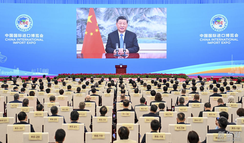 2021年11月4日晚,习近平以视频方式出席第四届中国国际进口博览会开幕式并发表题为《让开放的春风温暖世界》的主旨演讲。